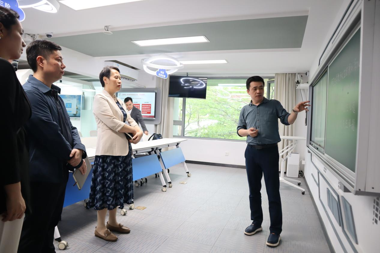 调研期间,谢资清一行以实地参观与座谈的形式,深入了解各高校在教育数字化转型中的实践经验,重点考察了智慧校园建设、教育人工智能研究、数智技术应用等领域的最新成果。