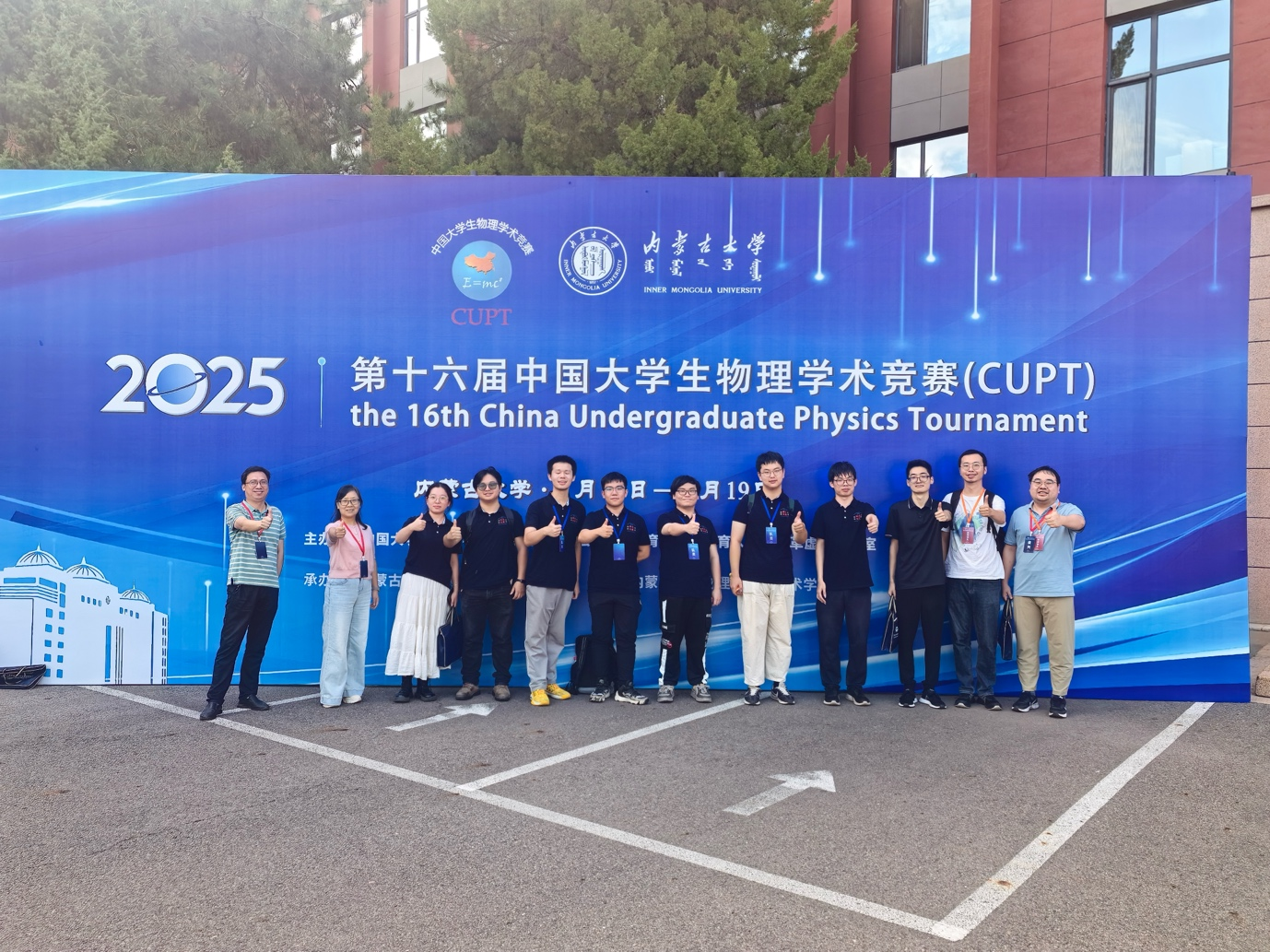 (供稿 物理与电子科学学院)2025年8月15日-18日,第十六届中国大学生物理学术竞赛(简称CUPT)在内蒙古呼和浩特举行,全国近300所高校经过六大赛区地区赛选拔,共有67支队伍晋级国赛团体赛。我校代表队经过5轮20个阶段激烈角逐,最终排名第17位,以总分191.3分的喜人成绩获得全国竞赛一等奖,创下我校在该项赛事的最好成绩。