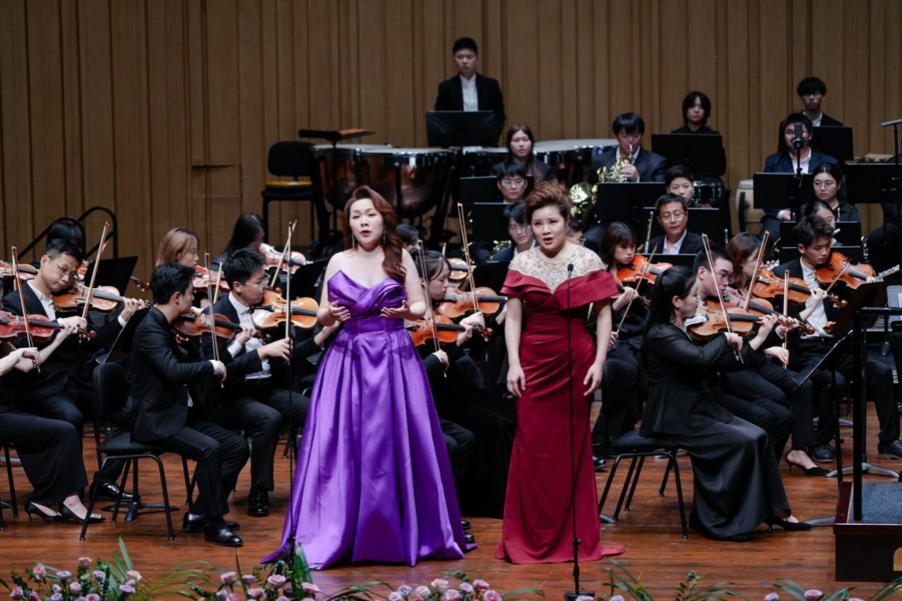音乐会在潇湘爱乐交响乐团演奏、音乐学院院长廖勇教授创作的管弦乐《花鼓抒怀》中拉开帷幕。