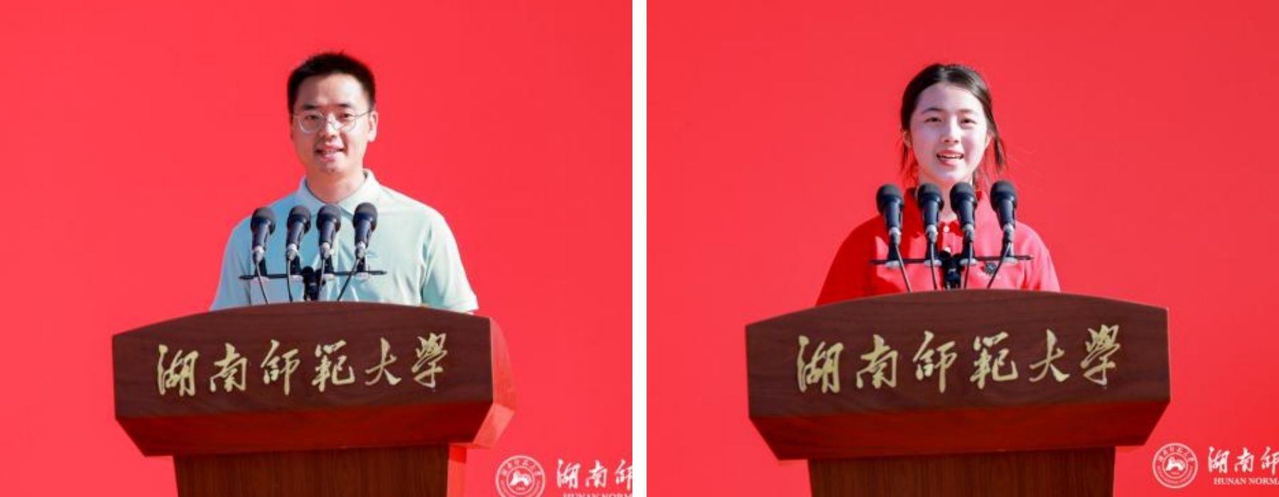 生命科学学院2025级博士研究生李焘、商学院2025级本科生匡珍慧作为新生代表发言。他们表示,将郑重接过历史接力棒,永葆爱国赤子之心、激扬奋发向上之心、涵养创新探索之心,追求卓越、脚踏实地、勇担使命,携手书写无愧于时代的青春华章。