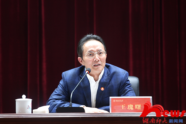 王瑰曙从自身成长求学经历出发,通过探讨“什么是教育”和“社会重视教育却不重视老师”的问题,分享了自己对教育的认知与理解。他指出,当前我国教育事业面临五个突出问题:一是教育均衡发展出现令人堪忧的局面;二是仅追求高考升学率使得中小学生不堪重负,超度学习引发分数通胀;三是家庭教育环境堪忧,存在家长对子女的某方面过度忽略或过度关注的问题;四是不科学的用人导向破坏整个教育生态健康发展;五是现代化信息技术对当代教育造成冲击。他表示,办好湖南具有中国特色的全国高水平大学,要抓住立德树人的核心点,将学科建设办出特色、办出水平。高校要将人才队伍作为支撑,将党的建设作为关键,建设好与国际接轨的大学。