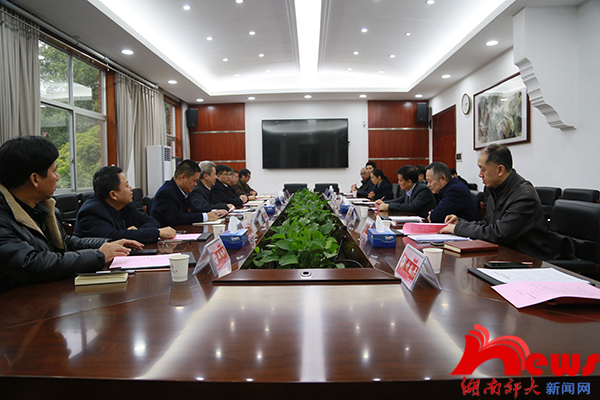 (记者 黄雨馨 沙凤池 胡云天)11月25日下午,我校在校办公楼二会议室与湖南科技学院商讨签订战略合作框架协议。湖南科技学院党委书记曾宝成、校长李钢,我校党委书记蒋洪新、校长刘起军等出席会议。会议由我校党委办公室主任李学荣主持。