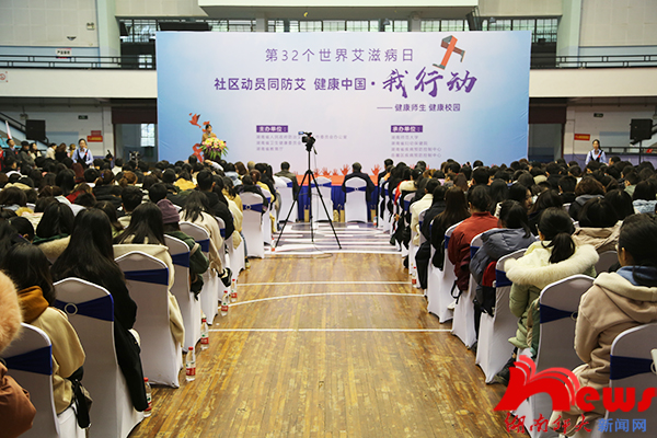 (记者 胡云天 朱元福)11月29日上午,“健康师生 健康校园”·2019年湖南省预防艾滋病宣传周启动仪式在我校体育馆举办。校党委书记蒋洪新、副校长匡乐满出席活动。