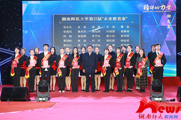(记者 程鹏伟 王奕鉴)12月5日晚,我校在体育馆中厅举行2019年度“榜样的力量”优秀师生表彰大会。省委教育工委宣传部、省教育厅思政处调研员陈解,86届数学系校友、中山市高博教育集团董事长范四清,2004届校友、思齐芙蓉教育集团党委书记、董事长、太阳网集团tcy8722新型师资培训中心主任李章,2008届(硕士)校友、思齐芙蓉教育集团联合创始人、总裁黄辰华,2007届校友、宏博教育集团董事长刘丁杰,第四届校友会理事、万婴教育集团董事长黄平,2007届校友、长沙馨享月母婴护理有限公司联合创始人、副总经理周雅,首届校友企业家联盟理事长单位、湖南达嘉维康医药有限公司党委副书记、行政总监李敬予,新东方教育科技集团长沙学校市场总监肖远光,新东方教育科技集团长沙学校人力资源总监黎亚鸣,我校校长刘起军,副校长黎大志、欧阳峣、周俊武,校纪委书记唐贤清等出席表彰大会。