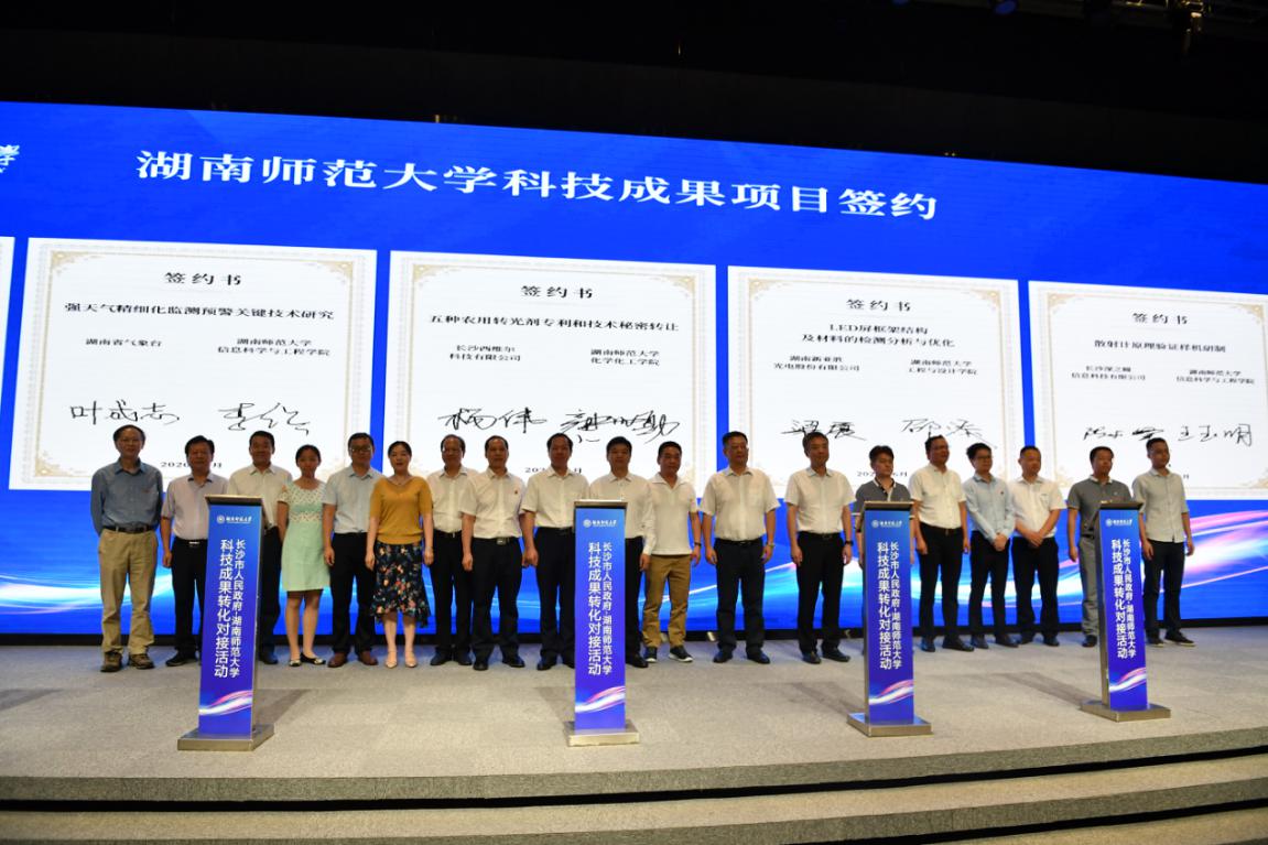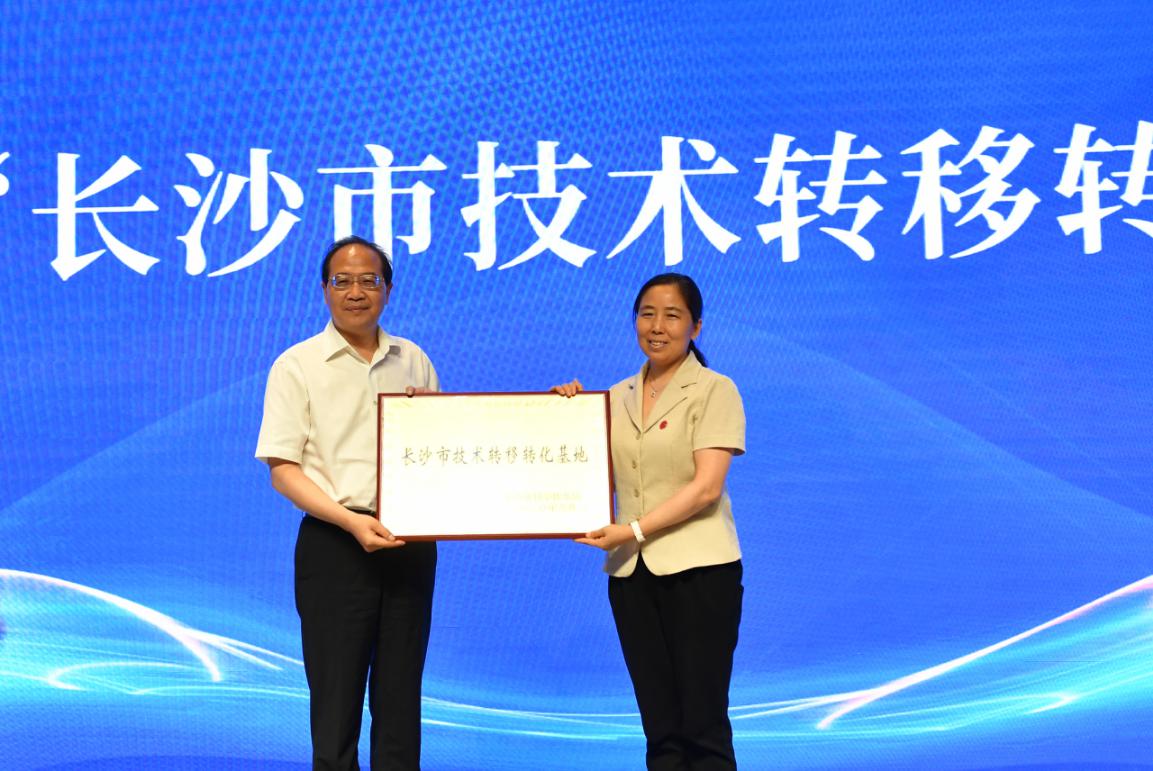 对接会上,我校现场接受了长沙市科技局授予的“长沙市技术转移转化基地” 牌匾,并共同举行了湖南师大知识产权运营有限公司成立暨揭牌仪式。