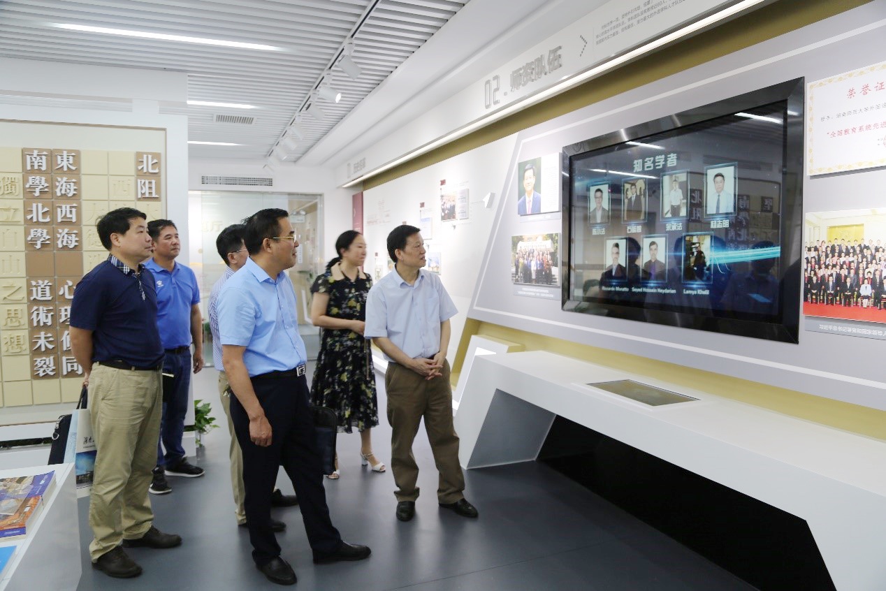 会后,蒋洪新陪同客人参观了我校世界一流建设学科展览厅。