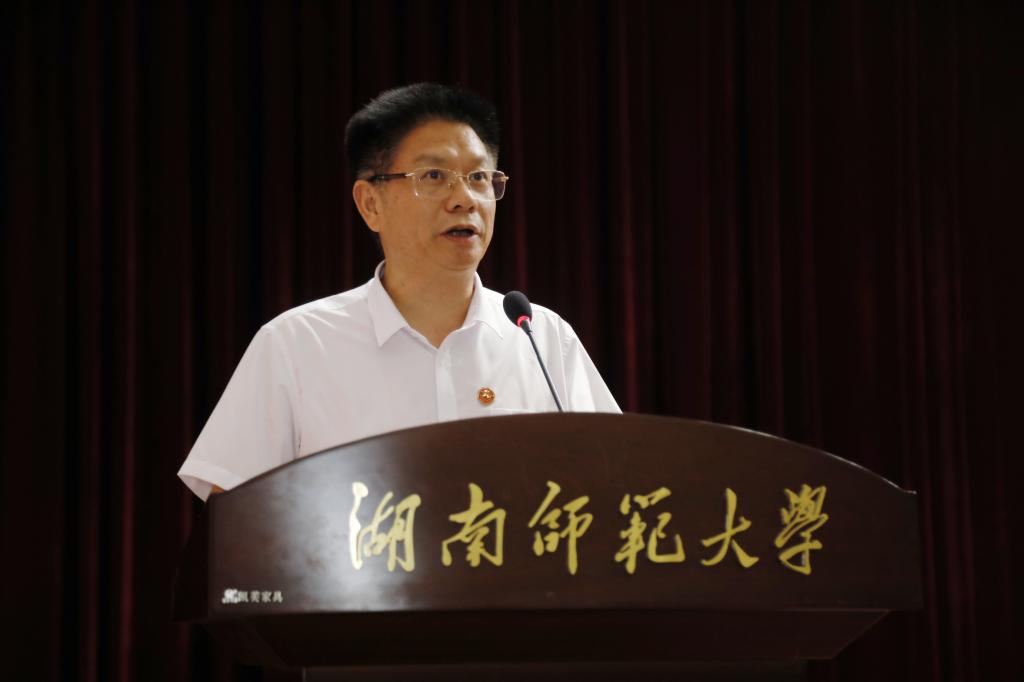 蒋洪新代表学校对各条战线工作人员的辛勤付出表示感谢,向获得安全维稳、计生工作的先进单位与个人表示祝贺。他指出,大家一要专注落实“两个责任”,推动管党治党的全面覆盖。准确把握全面从严治党的新形势新要求,将主体责任落实到学校管党治党的全过程全领域,紧扣中心工作落实监督责任,着力巩固拓展主题教育成果,推动作风建设的持续向好。二要增强忧患意识,坚决保障学校的安全稳定。充分认识到安全稳定形势的复杂性,加强防范,牢固树立责任意识,高标准严要求地做好疫情防控工作,努力防范安全事故,确保学校平安健康发展。三要加强部门联动,扎实做好卫生健康的计生工作。做好健康教育,多方联动为师生提供优质服务,促进学校和谐发展。他表示,暑假期间大家要充分利用时间做好总结规划,进一步思考自身项目如何融入学校发展规划、如何在大科城建设中占据有力地位,如何充分做好学科评估,厉行节约,以促进学校全新发展。
