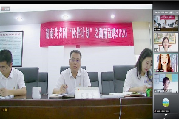 (通讯员 曹俊峰)7月17日,由共青团湖南省委主办、我校承办的“伙伴计划”之湖南益聘2020线上招聘会成功举行。我校副校长周俊武出席此次活动,会议由共青团湖南省委副书记夏彬华主持。周俊武代表学校致辞。他向共青团湖南省委、各兄弟高校、社工组织对此次活动和高校就业创业工作的支持表示感谢,向与会毕业生们表示欢迎。他从“平等互助、尊老爱幼、扶危济困、向上向善”四个方面介绍了社会工作在激发社会活力,为群众提供多样化服务等方面发挥的重要作用。他指出,社会工作组织需要更多的高校专业人才不断加入,希望同学们积极报名应聘,努力成为创新社会治理的专业力量。