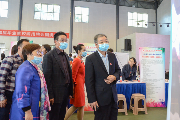 (通讯员 杨敏 邓雪怡 李劲松 周曼姿)10月22日下午,树达学院在院文体活动中心举行2021届毕业生秋季招聘会。副校长周俊武到现场看望招聘单位和毕业生。