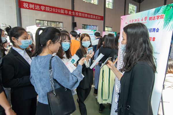 本次招聘会共73家企业,为树达学院2021届毕业生提供2389个工作岗位。企业共收到简历1256份,初步达成意向近500人。