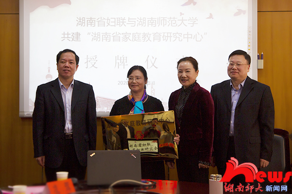 (记者 张永涛 马铁泉 徐缘雪 张凌暄 实习记者 刘姣)10月23日上午,省妇联与我校共建“湖南省家庭教育研究中心”授牌仪式在景德楼道德文化研究院415会议室举行。省妇联党组书记、主席、省妇女研究会会长姜欣,省妇联党组成员、副主席钟斌,省妇联副主席方琼,我校校长刘起军等出席仪式。仪式由我校道德文化研究院常务副院长向玉乔主持。