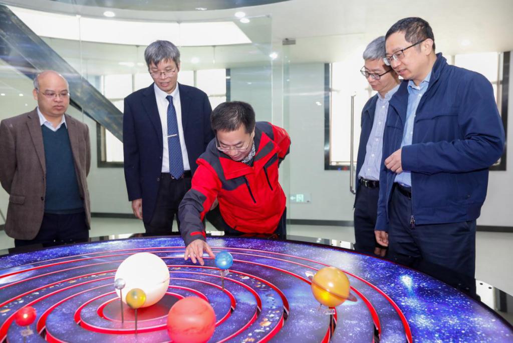 第二阶段,专家组实地走访了量子楼的超导量子实验室、微纳加工与测试实验室、氢能量子催化实验室、多功能成像实验室、教授工作室和研究生自修室、省级科普基地天文馆,查阅核实附件资料,并随机抽取了4名师生进行了个人交流座谈。