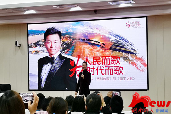 开班式后,著名男高音歌唱家、国家一级演员、享受国务院政府特殊津贴专家、我校音乐学院“潇湘学者”特聘教授、博士生导师王宏伟结合自己的成长经历,以“为人民而歌,为时代而歌——从‘西部放歌’到‘园丁之歌’”为题,给学员上了一堂精彩纷呈的培训课,从自己的军旅梦、歌唱家梦、回馈社会梦、歌剧表演艺术家梦和人民教师梦等五个方面,凸显了自己作为一名优秀军人、一名为人民而歌为时代而歌的著名艺术家、一名为党育人为国育才的教育工作者的真挚情怀和责任担当。在课堂上,他带领自己的学生演唱了多首歌曲,为学员带来了一场艺术盛宴,给学员留下极其深刻美好的印象。在此前一天,他还专门为我校入党积极分子培训班上了一堂生动的音乐党课。