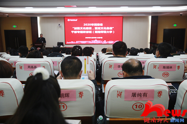 (记者 赵航航 林奕 实习记者 谭舒云)11月30日上午,2020年湖南省“加强文化建设,坚定文化自信”干部专题研修班在我校中和楼中和讲堂开班。我校副校长周俊武出席开班式并讲话,校党委委员、党委组织部部长王辉主持开班式。