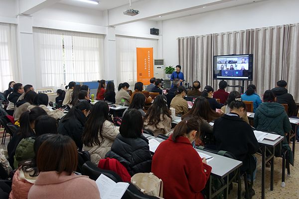 成功大学华语教学中心副主任陈菘霖以及我校印尼、越南、马来西亚等国近100名研究生通过直播方式参与学术研讨。