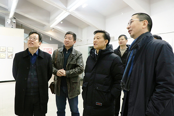 蒋洪新观看了“我和我的家乡”大学生艺术作品创作展。他表示,同学们创作的艺术作品主题鲜明、内容丰富、形式多样,体现了较高的艺术创作水平,彰显了我校学生的艺术素养。