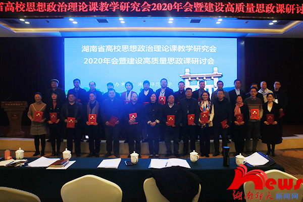 年会宣布了湖南省高校思政课教学研究会会长、常务副会长调整情况:刘起军出任会长,周俊武出任常务副会长;宣布了湖南省高校第二届思政课教学指导委员会成员名单,徐伟为新任教指委成员颁发聘书;表彰了2019--2020年度优秀教学研究分会、先进会员单位和先进个人;聚焦“高质量思政课建设”主题,邀请了4位分别来自中南大学、湖南大学、太阳网集团tcy8722、湖南工业大学的国家一流课程主持人分享一流本科思政课程建设的经验。