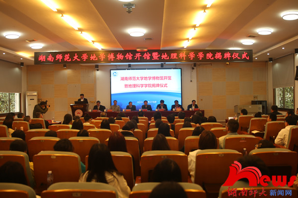 (记者 马铁泉 雷珩 通讯员 陈胜冲)4月25日下午,我校举行地学博物馆开馆暨地理科学学院揭牌仪式。省政协党组成员、副主席李民,国际地理联合会副主席、中国科学院院士傅伯杰,省政协副秘书长、机关党组成员廖鸿兵,中国地理学会副理事长兼秘书长张国友,中国科学院亚热带农业生态研究所党委书记王克林,我校党委书记蒋洪新,校长刘起军,副校长刘子兰出席仪式,仪式由刘子兰主持。