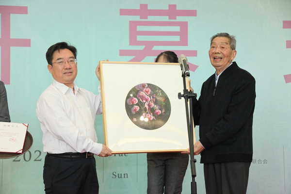 邓清柯代表省文联接受捐赠并宣布展览开幕。