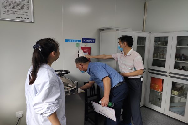 检查组分为两组分别赴化学化工学院、生命科学学院和医学院实验室实地考察,对实验室可能存在的问题进行逐一检查与征询。
