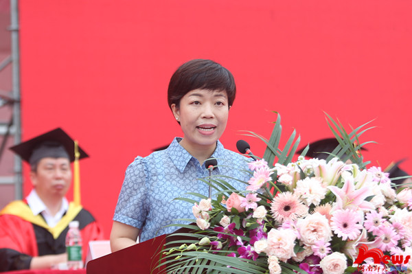 我校医学院护理学专业2008届毕业生、湖南省人民医院急诊重症监护室护士长、全国优秀共产党员、全国抗击新冠肺炎疫情先进个人,徐芙蓉校友致辞。她回忆了自己在师大求学的美好岁月,表达了对母校和毕业生的衷心祝愿,分享了个人作为抗疫一线志愿者的经历,鼓励学弟学妹们心存“家国有难,舍我其谁”的责任感,珍惜生活中的每一份经历,珍藏每一份感悟,将来在各自的岗位中成就闪闪发光的自己。