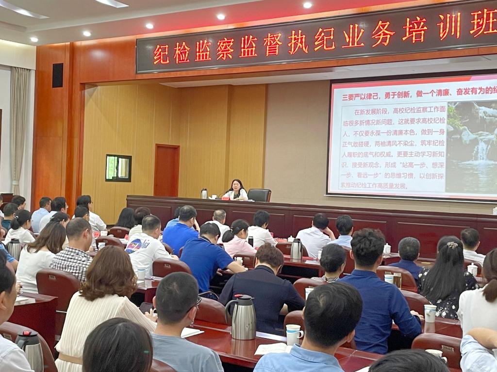 (供稿 校纪委)近日,校纪委书记姚春梅应邀为省纪委纪检监察执纪业务培训班学员作“高校纪检监察工作的思考与实践”专题讲座。省纪委省监委第四监督检查室、省纪委省监委驻省教育厅纪检监察组、省属本科院校纪委等各级纪检监察干部180多人参加讲座。