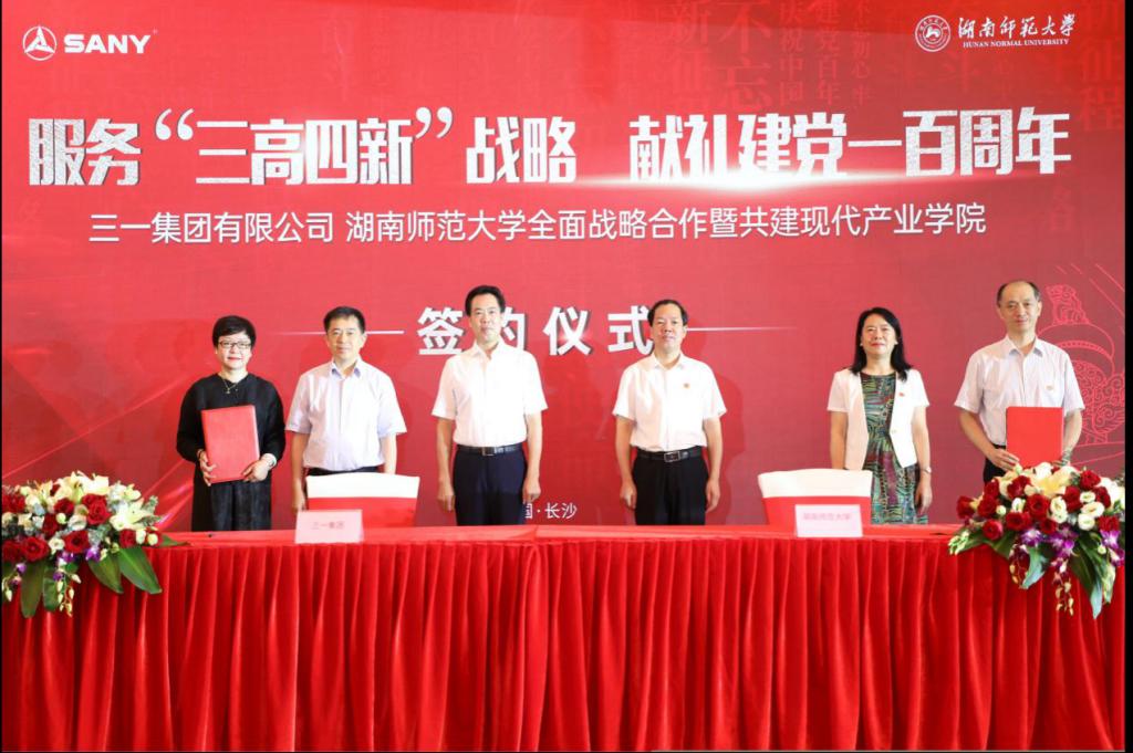 我校与三一集团均发源于涟源,有着深厚的合作基础和良好的合作前景。双方于2020年10月开启教育办学合作,共建了“三一乡村教育研究院”,直接服务国家乡村振兴战略。双方此次全面升级战略合作,同时为响应我省“三高四新”战略,双方特别签订了共建“三一现代产业学院”协议,由三一集团出资2000万元,瞄准“三高四新”战略重点,在我校挂牌成立一所融人才培养、师资建设、科学研究、理论创新于一体的产业学院,以实际行动为服务我省“三高四新”战略,特别是助力打造“国家重要先进制造业高地”提供“三一方案”和“师大智慧”。