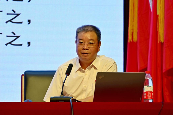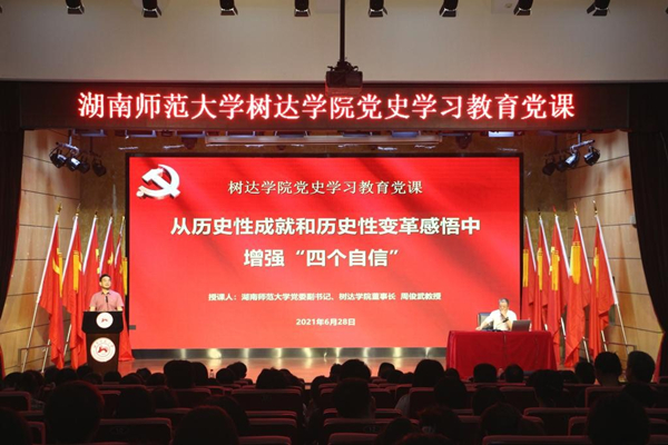 (通讯员 李瀚 刘诗琴 刘天冰)6月28日下午,校党委副书记、树达学院董事长周俊武在树达楼以“从历史性成就和历史性变革感悟中增强‘四个自信’”为题讲授党史学习教育党课。党课由院长周玉波主持。