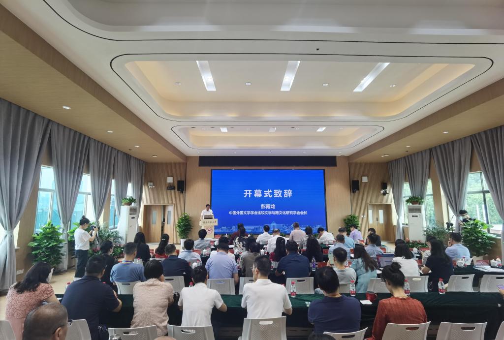 (记者 董飞 朱元福 通讯员 梁斌)7月17日上午,“第二届比较文学与跨文化研究高峰论坛”暨“2021年湖南省比较文学与跨文化学术前沿国际研究生暑期学校开幕式”在我校腾龙楼举行。会议采取线上线下相结合的方式进行,来自中国社会科学院、清华大学、中国人民大学、上海交通大学、南京大学、武汉大学、中山大学、华东师范大学、北京外国语大学、上海外国语大学等120余所高校和科研机构的200多位比较文学与跨文化研究的专家学者参加会议,近万人通过线上平台参会。中国外国文学学会比较文学与跨文化研究会会长彭青龙,湖南省教育厅学位管理与研究生教育处处长颜胜利,中国外国文学学会副会长、我校党委书记蒋洪新出席会议。开幕式由我校外国语学院院长曾艳钰主持。