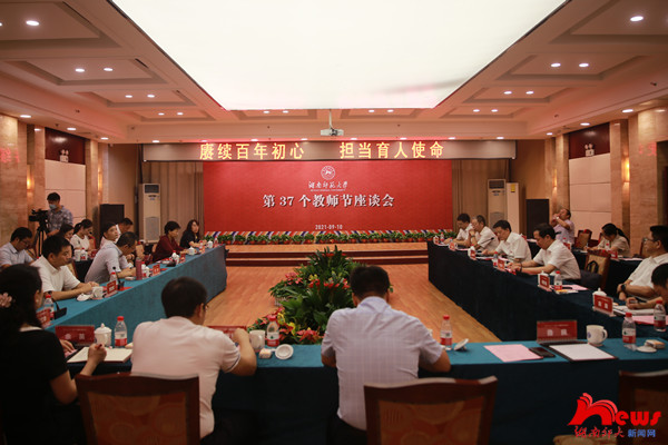 (记者 马铁泉)9月10日上午,我校庆祝第37个教师节教师代表座谈会在国际学术交流中心五楼会议室召开。校党委书记蒋洪新、校长刘起军、校党委副书记周俊武、副校长唐贤清出席座谈会。座谈会由刘起军主持。