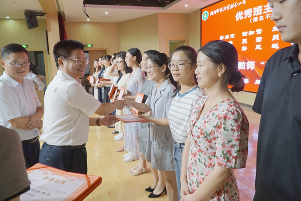 周凯兴宣读了“优秀班主任奖”和“青年教师新秀奖”,现场领导为优秀班主任和青年教师等颁奖。