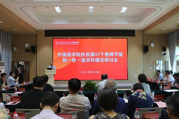 (通讯员 王耀光)近日,外国语学院举行庆祝第37个教师节暨新一轮一流学科建设研讨会。会议由院党委书记李泳波主持,副校长杨震出席会议。