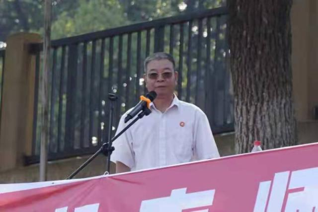 树达学院院长周玉波代表学院向辛勤承训的教官们以及为军训付出艰辛努力的同志们表示诚挚的谢意,向参加军训的新同学们致以亲切的问候。他表示,从新生们精彩的分列式演练看出,同学们收获了军人的技术和品格,收获了坚韧不拔的意志、团结协作的精神和良好的组织纪律观念,已经变得更加坚强和成熟。他指出,这段时间里,树达学院师生都在关心关注着新生,用相机拍下了大家训练的模样,用文字记录了大家的心路历程,还有散落在各个微信和QQ群中的答疑解惑,并且对大家的军训日记表示感动。他希望同学们继续保持训练场上的精、气、神,刻苦求学,全面发展,不怕苦,不怕累,不怕挫折,不怕风雨,昂首挺胸,阔步向前,续写大学生活灿烂篇章。