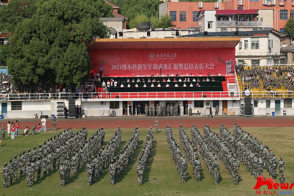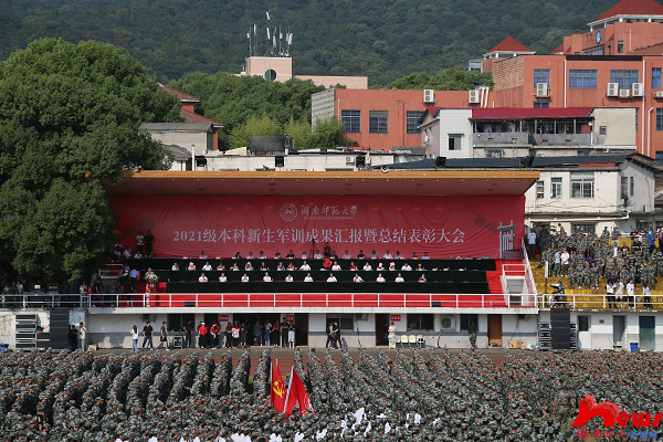 (记者 马铁泉 廖子璇)10月3日上午,我校2021级本科新生军训成果汇报暨总结表彰大会在田径场举行,来自21个学院身着军装的新同学组成不同方阵,精神抖擞,接受检阅。校长刘起军,校党委副书记周俊武,副校长刘怀德、王辉、杨震,各职能部门负责人,校军训工作领导小组成员及各学院负责人等一同检阅了2021级本科新生军训成果。