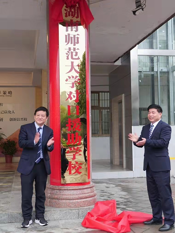 蒋洪新深情回顾了我校与绥宁县合作的情况。他说,自2015年起,受省委省政府指派先后对口帮扶绥宁县插柳村、花园阁村,在助力取得脱贫攻坚的伟大胜利后,又积极投身乡村振兴的伟大实践。从“精准扶贫”到“乡村振兴”,再到“教育公平”,学校矢志不渝服务国家战略。他表示,签署教育援助协议将开启我校支持绥宁教育加速发展的新征程,学校将在教育教学管理、联合教研教改、师资人才培养、教育资源共享等方面给予绥宁县全方位的指导与支持,引领促进绥宁教育的改革发展。