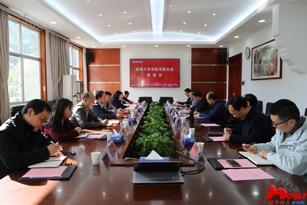 盛明科对我校的热情接待表示感谢,并介绍了湘潭大学的有关情况。他希望通过此次交流,学习我校在学科建设、成果奖励与人才引进、“双一流”建设等方面的优秀经验,将学习成果转化为具体举措,助推学校发展,进一步加强与我校的沟通合作,携手互助、共同进步。