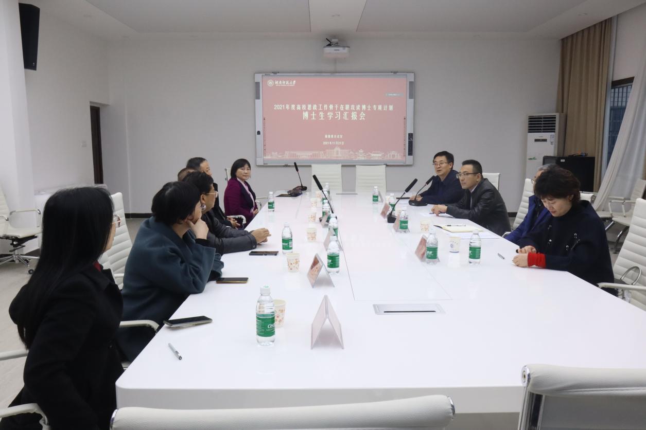 (通讯员 张瀚心 陈榕 张欣)11月21日上午,我校在励德楼会议室召开2021年度高校思政工作骨干在职攻读博士专项计划博士生学习汇报会。省委教育工委宣传部、省教育厅思政处二级调研员陈解,我校党委副书记周俊武出席会议。会议由学生工作部(处)部(处)长向发意主持。