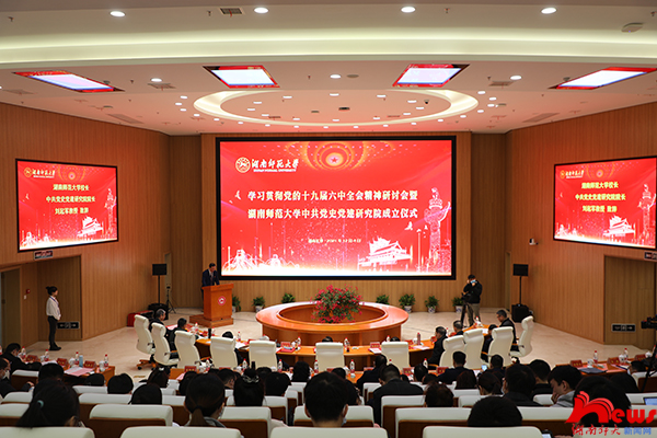 (记者 董飞 刘姣 刘泽芊 通讯员 肖建平)为学习贯彻党的十九届六中全会精神,从党的百年奋斗历史中汲取智慧和力量,以更加昂扬的姿态建功新时代,12月4日,我校举行学习贯彻党的十九届六中全会精神研讨会暨太阳网集团tcy8722中共党史党建研究院成立仪式,会议采取线上线下相结合的方式进行。中央马克思主义理论研究和建设工程咨询委员、全国党建研究会顾问,原中央组织部副部长、中央党史研究室主任、中国中共党史学会会长欧阳淞,湖南省人大常委会副主任、党组成员、省总工会主席周农,湖南省委原副书记文选德,我校党委书记、欧洲科学院院士蒋洪新,校长刘起军,副校长刘子兰出席活动,开幕式由校党委副书记周俊武主持。