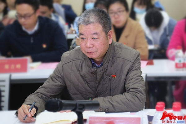 学校有关职能部门负责同志、公共管理学院党委负责同志、政治学系部分研究生和党委组织部(党校)党支部全体同志一同聆听了专题党课。