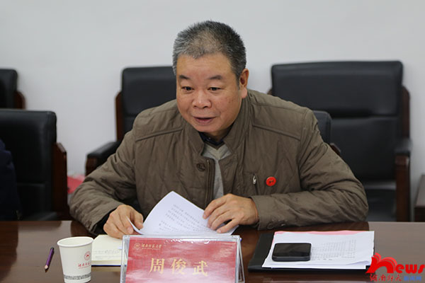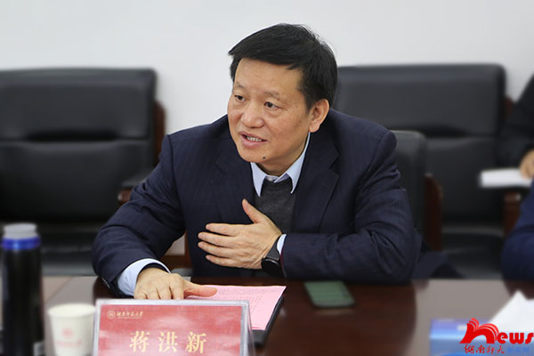 蒋洪新首先致辞,他对督查组来校指导表示热烈欢迎和衷心感谢。他强调,学校党委高度重视新时代统一战线工作,切实履行好统一战线工作的主体责任,把认真抓好《条例》的学习宣传和贯彻落实摆在重要位置。他指出,《条例》出台后,我校通过领导带头学、党委会专题学、理论中心组集中学等方式,营造了浓厚学习氛围;通过开展专题培训、集中宣讲等方式,推动了学习走深走实;通过围绕中心、服务大局,发挥参政议政作用,全方位推动《条例》各项规定在学校落地落实,并自觉转化学习效能推动学校建设和发展。他表示,学校将始终坚持以习近平新时代中国特色社会主义思想为指导,深入学习贯彻党的十九届六中全会、省第十二次党代会精神,将统战工作与学校重点工作一体化谋划并推进落实,凝心聚力推动学校“双一流”建设,为服务“三高四新”战略,建设现代化新湖南作出更大贡献。