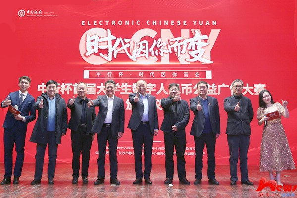 (记者 杜于蓝 丁美玲)12月21日下午,“中行杯·时代因你而变”首届大学生数字人民币公益广告大赛颁奖仪式在我校国际学术报告厅举行。中国人民银行长沙中心支行党委委员、副行长徐涌,湖南省地方金融监管局二级巡视员石涛,湖南省教育厅二级巡视员柴世钦,中国银行湖南省分行党委书记、行长李芒,中国银行湖南省分行党委委员、副行长武建宙,我校副校长王辉出席仪式。