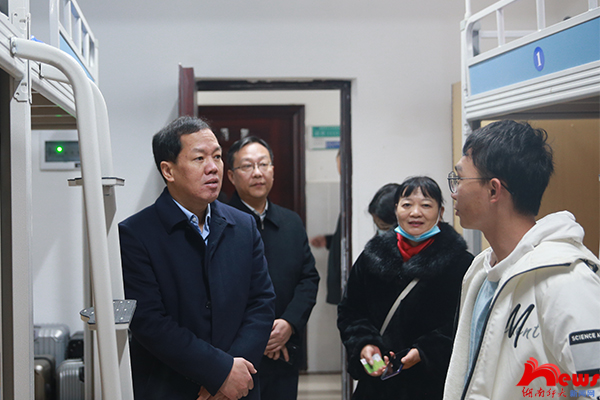 刘起军一行重点调研了教学实验综合大楼的建设发展情况,先后考察了监控室、地下设施、学生宿舍等地,听取相关负责人的工作汇报,并听取学生对学校发展和校园建设的意见和建议。刘起军强调,要进一步完善教学实验综合大楼的建设,一方面要切实服务于学生学习、生活需要,加快图书馆、研讨室等学习配套设施的建设进度,为教学、自习活动提供场地保障;另一方面要严格落实好消防人防要求,加强对楼道和电梯间的消防安全与管理。