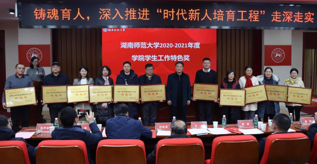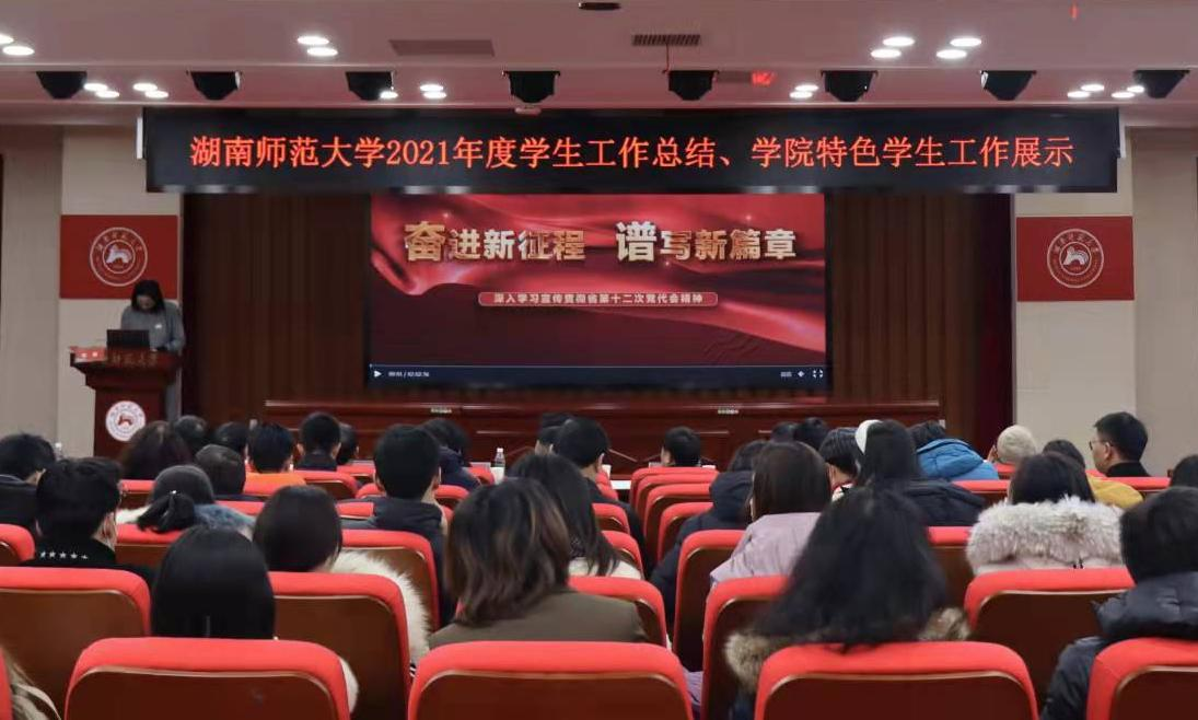 会议第一阶段,校团委书记陈天嵩、招生与就业指导处处长田野、学生工作部(处)部(处)长向发意分别就我校2021年共青团工作、招生与就业工作、学生工作进行总结汇报。随后各学院党委副书记围绕“铸魂育人”主题,结合“仁爱精勤”校训与学院特色,从思政教育、学风建设、心理健康教育、双创育人等方面汇报学院特色学生工作,展示学院学生工作风采。