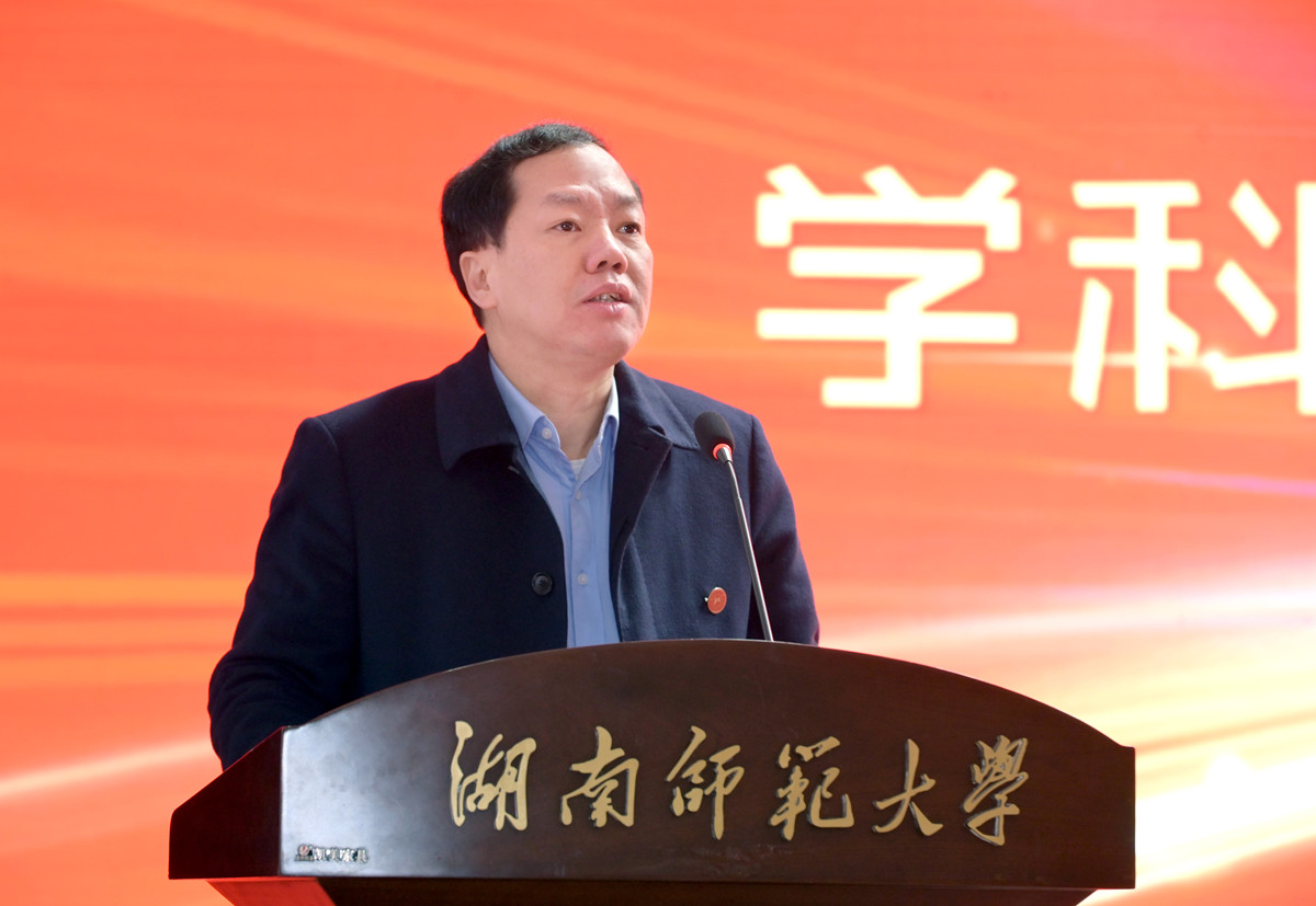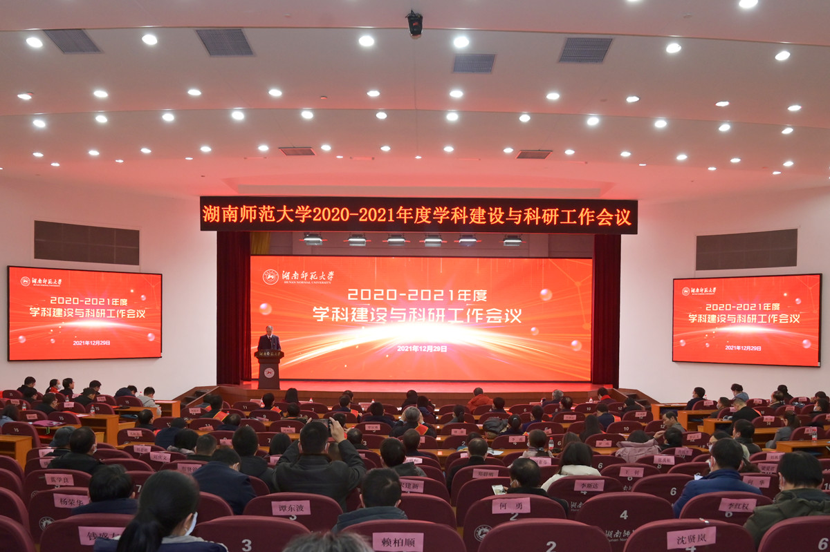 蒋洪新向获奖先进集体和个人表示热烈的祝贺,向为学校学科建设和科研工作作出贡献的老师表示崇高的敬意和衷心的感谢。他指出,学校党委和行政高度重视学科建设和科研工作,面对新的挑战和形势,将从以下四个方面继续推进各项工作。一是聚焦大学本源,更加突出教学与科研工作。要把教学和科研摆在更加突出的位置,一方面坚守教学,另一方面要以科研立身。二是聚焦立德树人,以高质量教学科研引领人才培养。要强化教书育人、科研育人,真正实现以高质量教学科研引领高素质人才培养。三是聚焦社会服务,始终紧扣国家和社会重大战略需求。要努力在服务现代化新湖南建设和国家经济社会发展中贡献师大智慧和力量。四是聚焦协同创新,产出更多标志性科研成果。要把学校传统的优势学科做强,把国家战略急需的学科做精,把新兴交叉融合的学科做实,不断提升科研能力。
