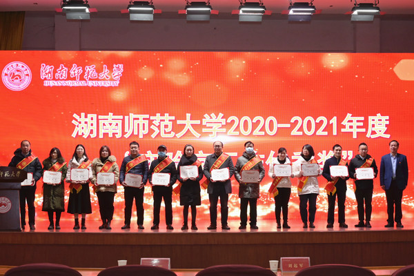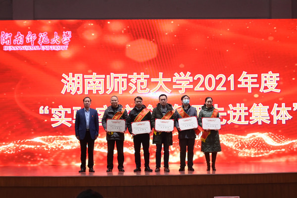 谢资清宣读了学校《关于表彰2021年度“实验室安全管理先进集体”的决定》和《关于授予胡瑞祥等13位同志2020-2021年度实验室工作优秀奖的决定》文件。