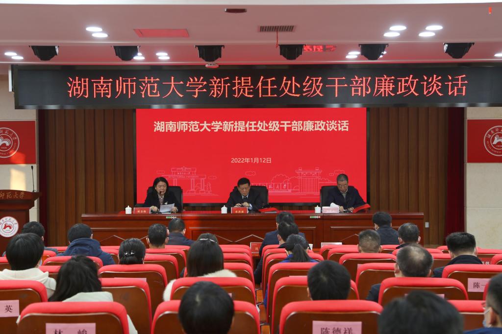 (记者 马铁泉 杨玉婷)1月12日上午,我校新提任处级干部集体任前廉政谈话暨警示教育会议在中和楼129会议室召开,校党委书记蒋洪新、纪委书记姚春梅出席会议。会议由校党委副书记周俊武主持。