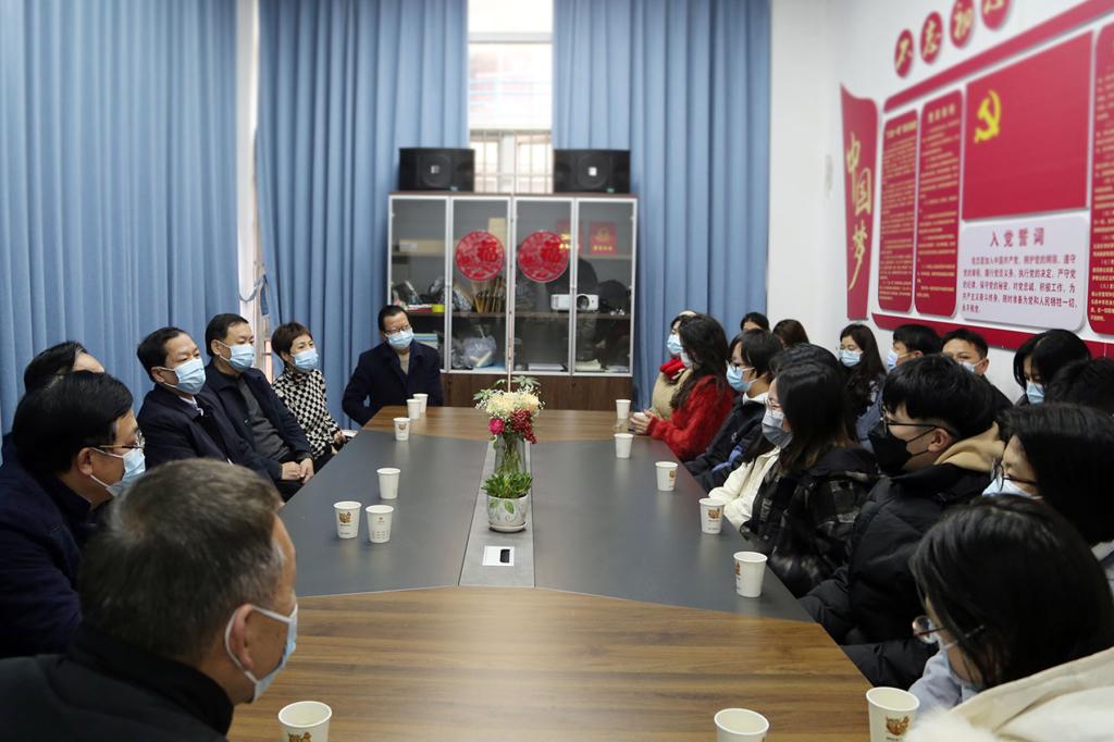 (记者 汪瑶)牛去瑶池传喜讯,虎来大地报春意。1月26日,正值农历小年,校党委书记蒋洪新、校长刘起军、副校长王辉亲切看望寒假留校学生并与留校学生代表座谈,倾听同学们的心声,了解大家的生活情况。