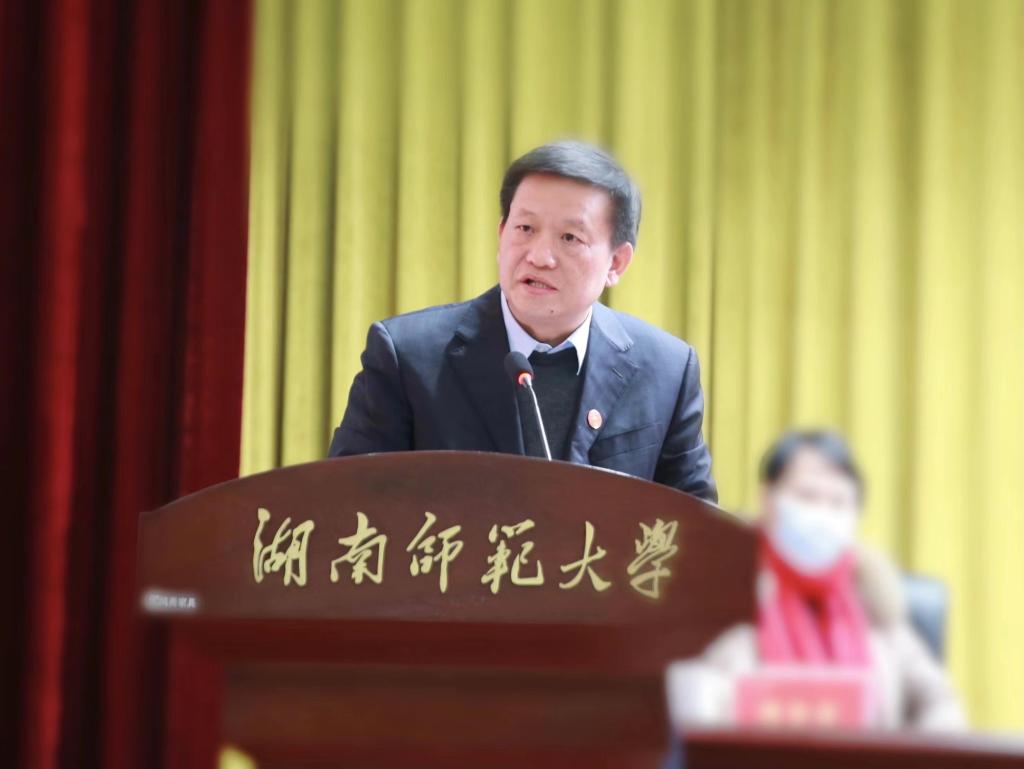 蒋洪新向大家致以诚挚的新年问候,对长期以来坚守岗位、辛勤付出的全校教职工表示衷心的感谢,并激励大家在新的一年要永葆“闯”的精神、“创”的劲头、“干”的作风。他就如何贯彻落实好十九届六中全会精神、省第十二次党代会精神,谋划推进新学期学校事业发展,提出了三点要求:一是要把握历史主动,沿着正确方向坚定前行。要认真学习领会党的十九届六中全会和省第十二次党代会精神,重视和善于运用历史规律的高度政治自觉,以史为鉴、开创未来。在新的赶考路上,全体师生要不断增强政治自觉、历史自信和行动自觉,以强烈的使命感和责任感把学校各项事业向前推进;二是要增强战略思维,聚焦内涵发展布局谋篇。在危机中育新机,于变局中开新局。要始终把人才视作发展的原动力,注重人才培养、精准引育优秀人才,建立顶尖人才引育计划、出台更有温度和力度的人才新政,巩固人才培养中心地位,切实服务国家和湖南的战略需求,推进学校“双一流”建设;三是要实施有效管理,激发干事创业热情活力。要重视干部培养,建立健全体制机制,运用大数据,优化“一站式”服务,不断提高学校治理体系和治理能力现代化水平。他表示,2022年是党的二十大召开之年,也是实施新一轮“双一流”建设的启动之年,应以只争朝夕、担当实干、锐意进取的姿态,以优异的成绩迎接党的二十大胜利召开。
