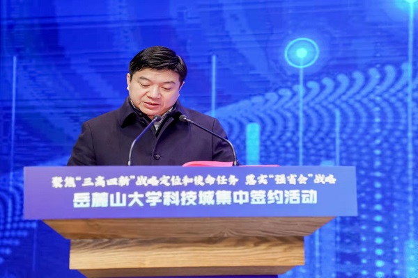 (供稿 大科城办公室 科技处)2月22日上午,“聚焦‘三高四新’战略定位和使命任务落实‘强省会’战略岳麓山大学科技城集中签约活动”在岳麓科创港举行。长沙市委副书记、岳麓山大学科技城推进委员会主任阚保勇出席并讲话,长沙市人民政府副市长邱继兴主持活动。我校副校长杨震出席。