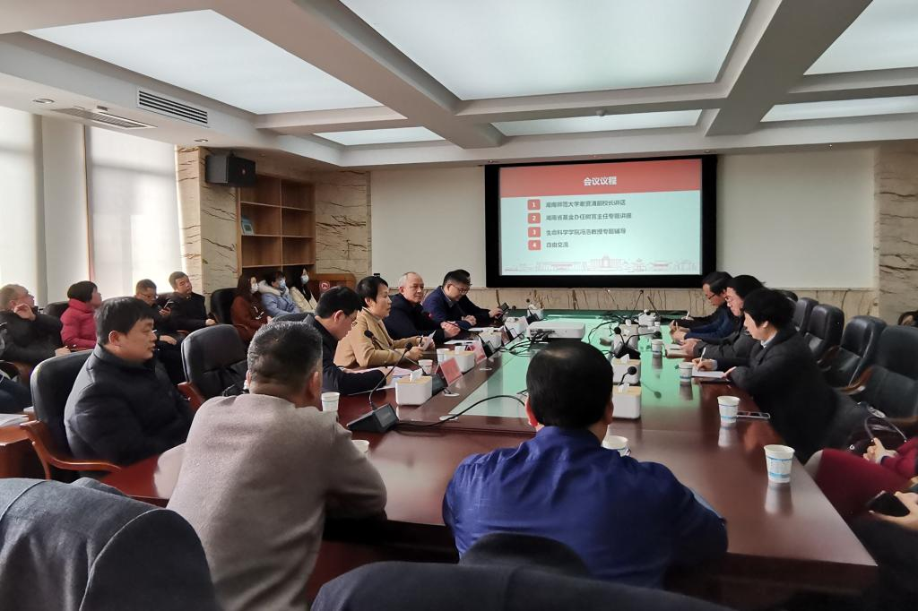 (供稿 科技处)2月25日下午,学校在省部共建淡水鱼类发育生物学国家重点实验室召开2022年国家自然科学基金区域创新发展联合基金(湖南)项目申报座谈会。湖南省基金办主任任树言,副校长谢资清出席会议。会议由科学技术处副处长邹永星主持。